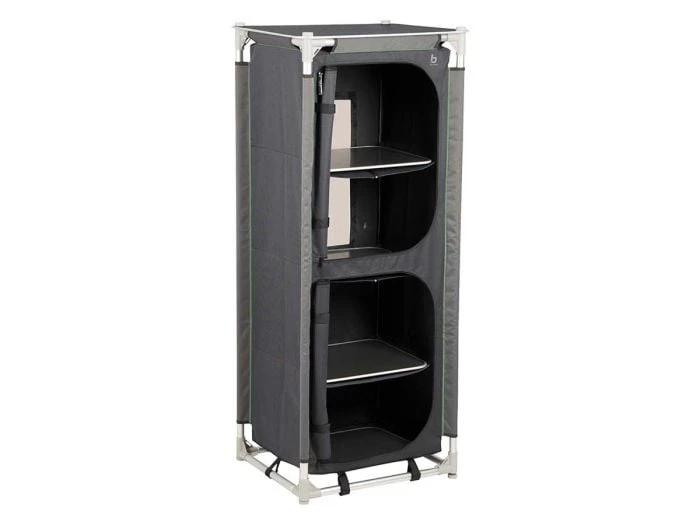 Il vous manque un espace de rangement supplémentaire, mais vous n’avez pas la place pour une grande armoire ? Optez alors pour l’armoire haute Bo-Camp Deluxe. Pour cette armoire de camping compacte, il y a toujours de la place dans votre tente ou auvent. L’armoire mesure 60 x 49 x 140 cm et est pourvue de 4 étagères que vous pouvez fermer avec une fermeture éclair. L’arrière est équipé d’un filet qui assure une bonne ventilation de l’armoire. Sur le côté, il y a quelques compartiments de rangement supplémentaires, pratiques pour ranger un magazine, un déodorant ou de la crème solaire.