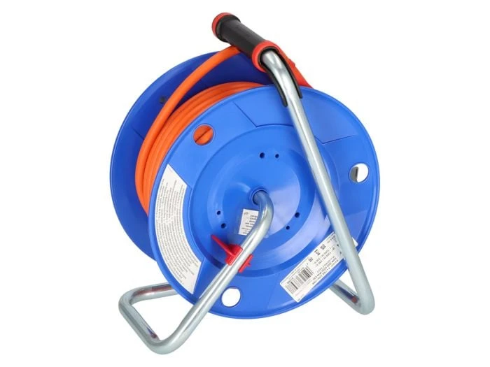 L’enrouleur de câble est idéal pour une utilisation à l’extérieur, par exemple au camping. La rallonge a une longueur de 25 mètres et est très robuste et résistant à l’huile. Il est pourvu d’une poignée de transport qui permet de le porter et de l’accrocher. Ses dimensions sont de 26 x 22 x 36,5 cm et son poids est de 6,5 kg.