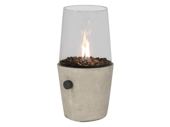 Cette lanterne au gaz de conception élégante combine le ciment et le verre et donne beaucoup d’atmosphère, de confort et de lumière. Un vrai plus pour votre terrasse !