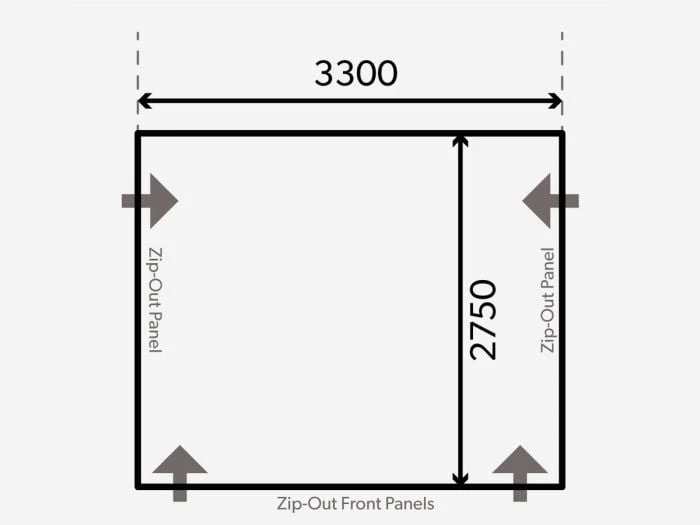 L’auvent a une largeur de 330 cm. Cela signifie que la caravane doit avoir un rail droit d’au moins 330 cm afin de pouvoir monter l’auvent. Vous souhaitez glisser l’auvent dans le rail de votre store ? Dans ce cas, l’auvent doit avoir une longueur minimale de 350 cm.