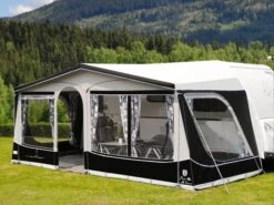 La Hypercamp Domaso 240 est une jolie solette de caravane en toile de tente TenCate robuste. La Domaso est facile à utiliser et rapide et simple à monter. Avec sa profondeur de pas moins de 240 cm, la Domaso est assez profonde pour s’asseoir confortablement en dessous quand il fait beau ou un peu moins beau. Les fenêtres rondes offrent une belle vue. Vous prévoyez du beau temps ? Alors, il est également possible d’ouvrir entièrement les deux parois latérales. Les deux parois latérales sont également équipées d’un volet. Grâce à ces volets triangulaires, la Domaso s’adapte également aux caravanes rondes et obliques sans compromettre son design. Grâce aux clips de sangle anti-tempête cousus, vous pouvez également fixer la solette avec un kit de sangle anti-tempête optionnel afin qu’en cas de rafales de vent inattendues, la solette ne puisse s’envoler.