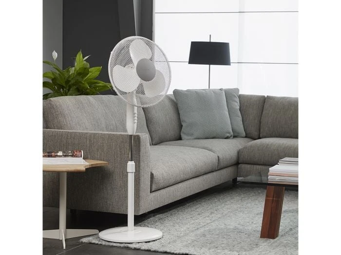 Ce ventilateur sur pied Inventum est équipé d’un puissant moteur de 40 watts et peut également être réglé sur 3 vitesses différentes. Ce ventilateur est également oscillant à 80 degrés, ce qui lui donne une grande portée et un débit d’air optimal. La fonction de pivotement peut également être actionnée à l’aide du bouton marche/arrêt.
