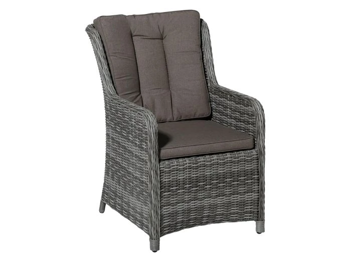 Le coussin est composé de 50% de coton, de 45% de polyester et de 5% de fibres, ce qui donne la sensation du coton tout en étant plus résistant grâce à l’ajout du polyester. Le tissu, très respirant et résistant à la chaleur, est parfait pour un été chaud ! Un revêtement PA hydrofuge est ajouté, ainsi qu’une fine couche de plastique sous le tissu, ce qui permet d’obtenir la meilleure qualité pour une utilisation extérieure. Le coussin d’assise mesure 49 x 49 x 5 cm. Le dossier mesure 56 x 52 cm.
