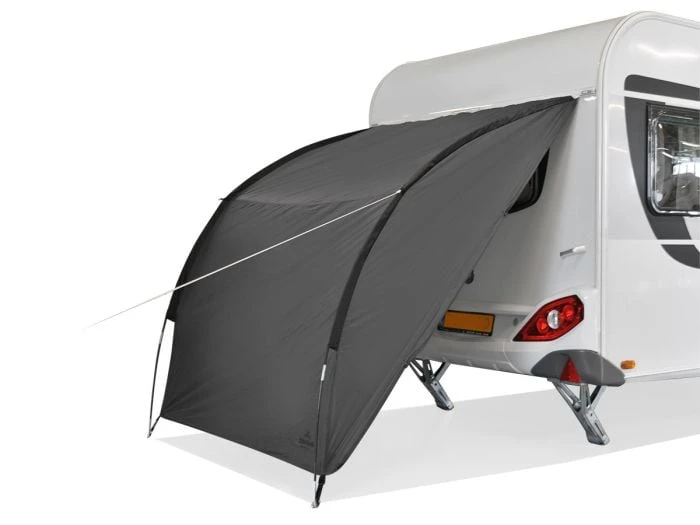 Si l’arrière de votre caravane ou camping-car est équipé d’un rail de tente, vous pouvez facilement et rapidement glisser cette tente vélo dans le rail de tente grâce au tendon. Avec sa surface au sol de 190 x 170 cm, le Bike Roof XL est suffisamment grand pour accueillir deux vélos électriques de taille normale. Comme les deux parois latérales peuvent être enroulées, vous pouvez entrer dans votre tente des deux côtés.