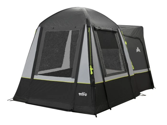 La tente est complètement indépendante, ce qui permet d’utiliser la voiture ou le fourgon pour faire des courses sans avoir à démonter la tente. La porte avant et la porte latérale de la tente peuvent être utilisées comme solette, les mâts de solette nécessaires sont fournis. De plus, la tente est équipée d’un tapis de sol fixe cuvette, ce qui vous permet d’empêcher l’eau et les insectes d’entrer.
