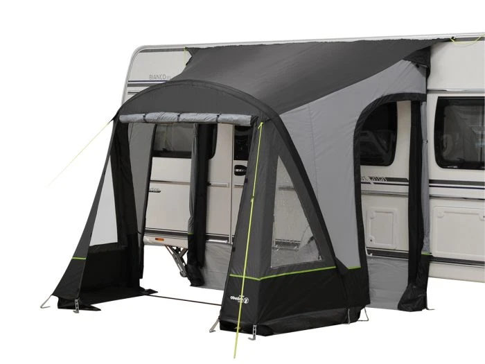 Utilisez le Rio 280 comme abside devant la porte de la caravane ou comme auvent compact avec deux chaises et une petite table. Les barres à débuller optionnelles vous permettent de serrer les parois latérales contre la paroi de la caravane pour encore plus de confort.