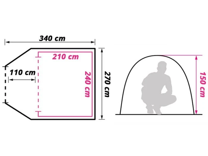 La tente est pourvue de nombreuses caractéristiques intéressantes, comme le tapis de sol avec bord surélevé près de l’espace de vie, pour éviter d’avoir les pieds mouillés.
