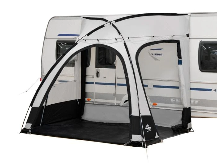 Cet auvent compact et léger a un prix attractif et offre un peu plus qu’un store. Le Treffer est une solution pour les petites caravanes avec un rail droit assez court.