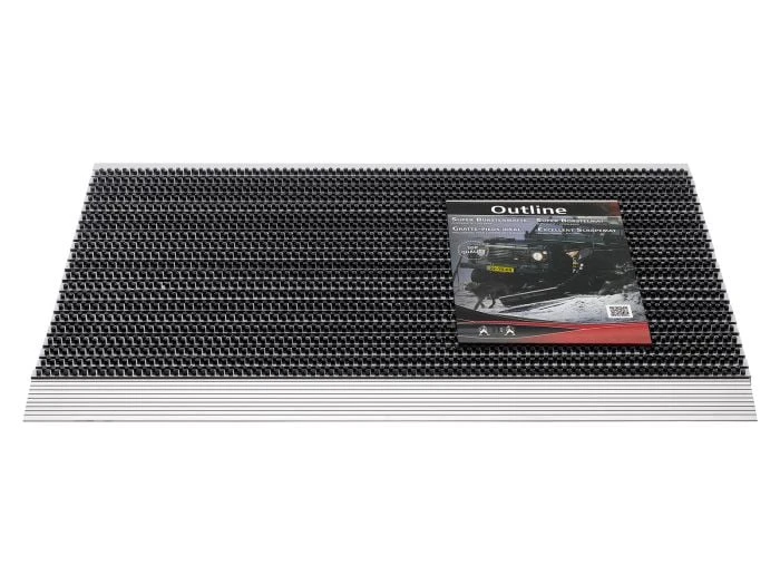 Le paillasson extérieur Outline 325 a un profil en aluminium et des poils fins. Le paillasson à brosses a une épaisseur de 22 mm et une taille de 50 x 80 cm.