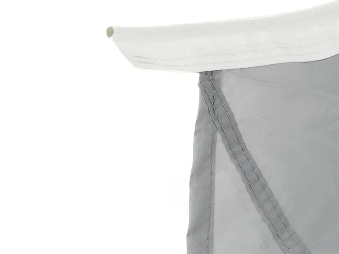 Le montage de cet abri camping est très facile : il suffit de tirer le jonc qui se trouve sur le dessus de la toile à travers le rail prévu à cet effet à l’arrière de la caravane. Il suffit ensuite de fixer les élastiques aux quatre coins et l’abri camping pour caravane est prêt à protéger votre matériel de camping !