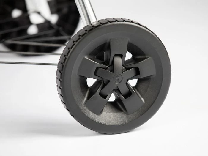 Vous pouvez utiliser ce barbecue aussi bien avec du charbon de bois qu’avec des briquettes. Le barbecue a trois pieds, dont deux sont munis de roues pour pouvoir le déplacer facilement.